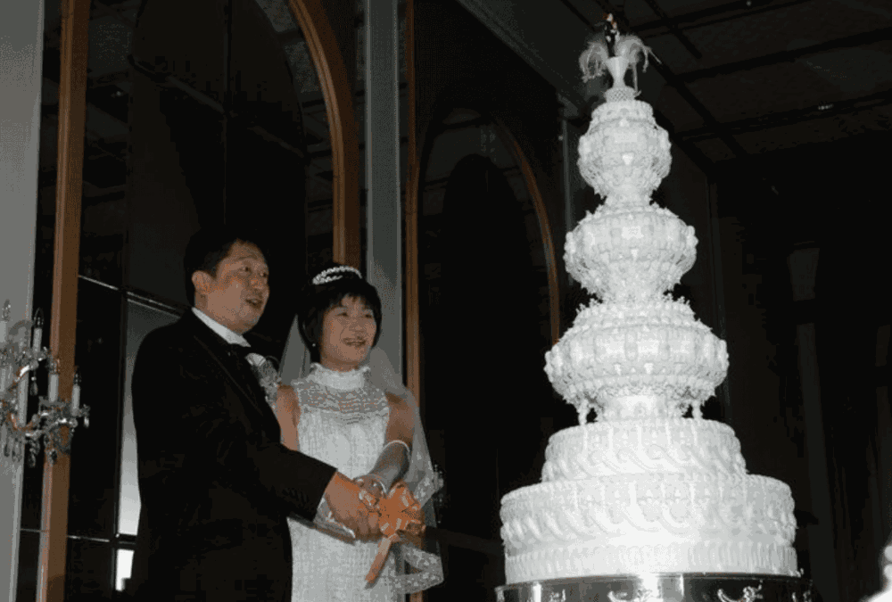 500人以上参加した、立食パーティー形式の披露宴だったようですよ。