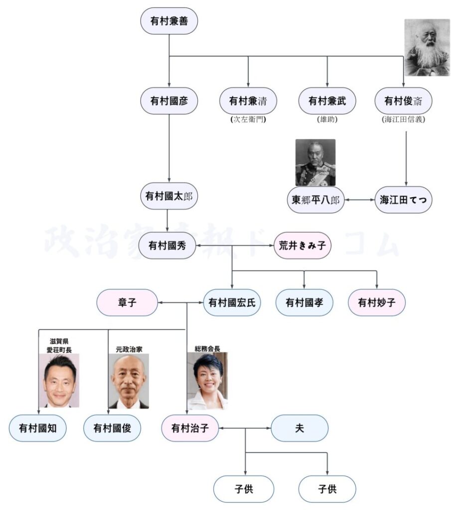 総裁へ就任した高市により、総務会長に起用された有村氏の家系図についてまとめました。